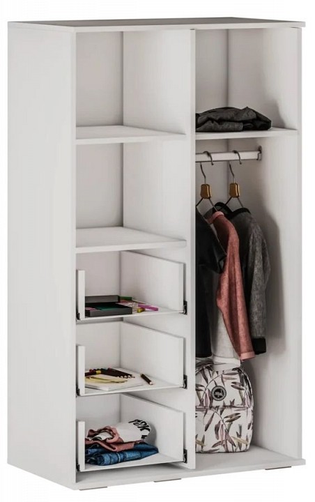 1 дверца, 1 штанга для вешалок, 3 полки, 3 ящика |